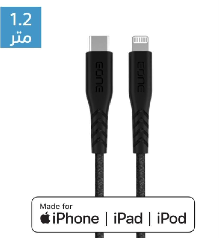 كيبل شاحن اي ون C-USB إلى Lightning MFI شحن سريع 1.2 م نسيج نايلون